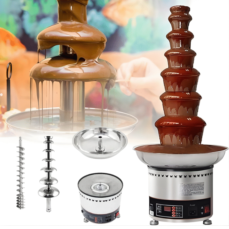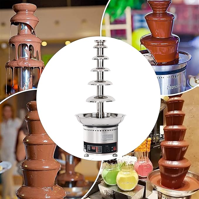 Čokoládová fontána Huanyu se 4 úrovněmi je ideální volbou pro večírky, svatby a různé akce, nabízí velkou kapacitu 1350 g. Je vyrobena z nerezové oceli 304, což zaručuje odolnost, bezpečnost a stabilní provoz. Je vhodná nejen pro čokoládu, ale i pro omáčky, jako je sýrová nebo BBQ, což z ní činí všestranné zařízení pro každou příležitost.