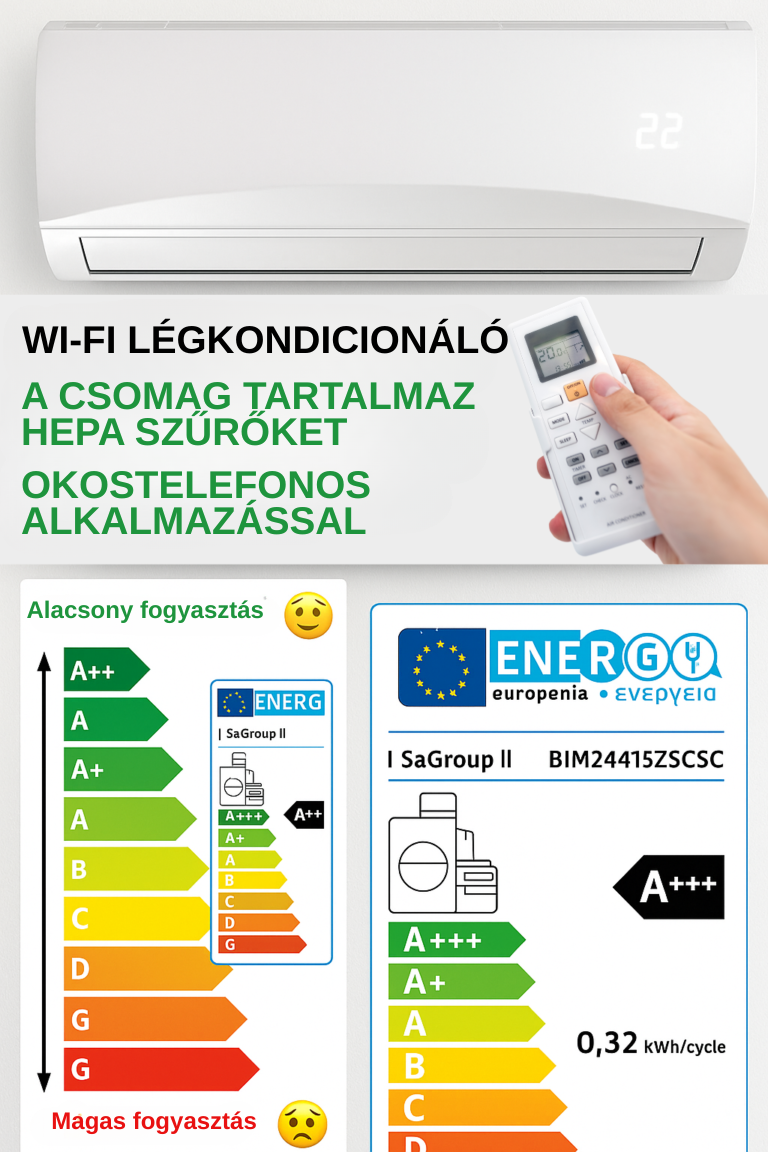 A+++ energiaosztály a maximális megtakarításért! Ez a fali fűtő klímaberendezés akár 93%-kal is csökkentheti a számlaköltségeket, miközben mérsékli a fogyasztást és óvja a környezetet. Az intuitív LED-kijelzővel és a beépített távirányítóval kényelmesen beállíthatod a hőmérsékletet, kiválaszthatod a ventilátor sebességét és időzítheted az automatikus kikapcsolást.