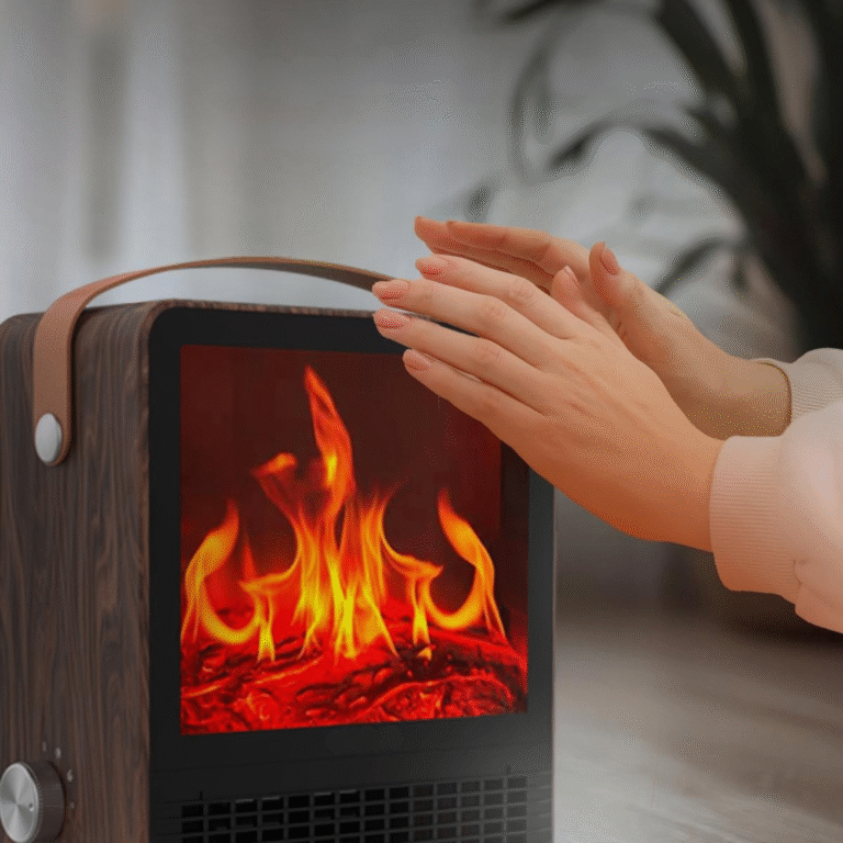 Με διαστάσεις 30,7 × 27 × 27 cm και βάρος μόλις 1,94 kg, το ηλεκτρικό τζάκι τοποθετείται εύκολα όπου χρειάζεστε ζεστασιά και άνεση. Το σχήμα του σε σχήμα βάσης παρέχει σταθερότητα και το κομψό φινίρισμα το μετατρέπει σε ένα ευχάριστο διακοσμητικό στοιχείο. Η πολύ αθόρυβη λειτουργία του επιτρέπει να χρησιμοποιείται στο υπνοδωμάτιο, το γραφείο ή το σαλόνι χωρίς να διαταράσσει τον ύπνο ή τις καθημερινές σας δραστηριότητες.
